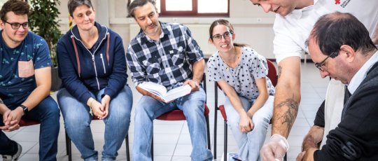 Une personne est en détresse. Que faites-vous ? Beaucoup de gens paniquent. Pourtant, vous pouvez éviter le pire en apportant immédiatement votre aide. C'est pourquoi nous voulons rendre les gens autonomes grâce à nos formations sur premiers secours. Nous proposons un large éventail de cours adaptés à vos activités. Nous soutenons les entreprises, les écoles et les associations.