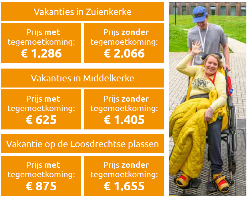 Une expérience fantastique pour les adultes (âgés de 18 ans et plus) souffrant d'un handicap physique et/ou mental, qu'ils soient seuls ou accompagnés d'un partenaire, d'un soignant, d'un ami ou d'un membre de la famille. En tant que vacancier, vous pouvez profiter d'une semaine d'insouciance, 24 heures sur 24 et 7 jours sur 7, sous la surveillance de bénévoles formés.