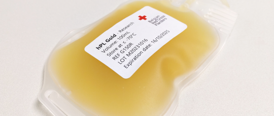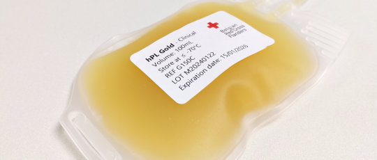 Le lysat plaquettaire humain (hPL) est une solution obtenue par lysation de plaquettes humaines. Il contient un riche mélange de facteurs de croissance, de cytokines et d'autres molécules bioactives qui stimulent la croissance cellulaire, la régénération et la réparation des tissus. C'est pourquoi il convient parfaitement comme supplément exempt de xéno pour la culture de cellules (souches) dans la production de thérapies cellulaires, entre autres. Le développement de notre hPL Gold permet à Rode Kruis-Vlaanderen d'utiliser au mieux tous les dons, apportant ainsi une contribution supplémentaire à l'amélioration des soins aux patients.