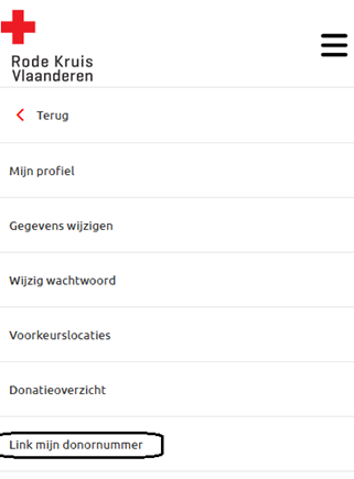 En outre, il se peut que votre profil existant ne soit pas (encore) lié à votre nouveau compte. Vous pouvez le faire en cliquant sur votre propre nom dans le menu, puis en cliquant sur "Lier mon numéro de donateur". Saisissez ici votre numéro de donateur.