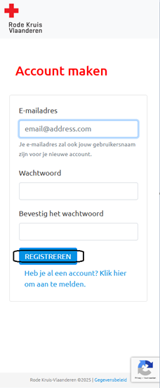 Connectez-vous avec l'adresse e-mail connue de la Rode Kruis-Vlaanderen.
