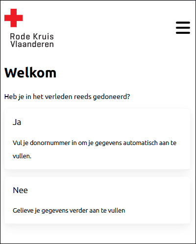 Si vous n'êtes pas encore reconnu comme donateur par la Rode Kruis-Vlaanderen, deux possibilités s'offrent à vous : vous enregistrer avec votre numéro de donateur ou introduire vos données manuellement.