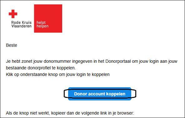 Pour protéger vos données personnelles, nous vous avons envoyé un e-mail à l'adresse e-mail qui était déjà liée à votre numéro de donateur dans le système. Dans cet e-mail, vous devez confirmer une dernière fois qu'il s'agit bien de vous. Ouvrez l'e-mail et cliquez sur le bouton 'Lier le compte du donateur'.